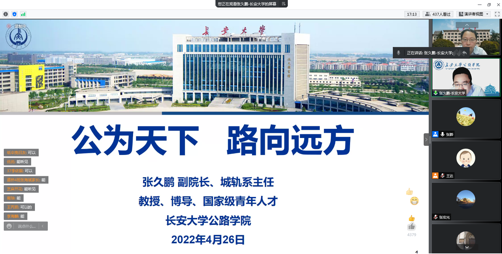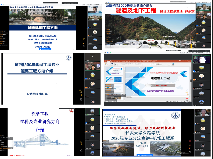 2022年4月26日21:00,公司在线上召开了2020级道路桥梁与渡河工程专业(方向)分流宣讲会。公司副经理、城市轨道工程系主任张久鹏,隧道工程系主任罗彦斌,道路工程系副主任张洪亮,岩土工程系副主任张宏光,桥梁工程系副主任陈峰,机场工程系副主任王旭昊参加会议,并作专业(方向)宣讲。2020级部分员工家长、教务工作人员、辅导员、道路桥梁与渡河工程专业员工530余人参会,会议由专业建设及教学主管张晔主持。