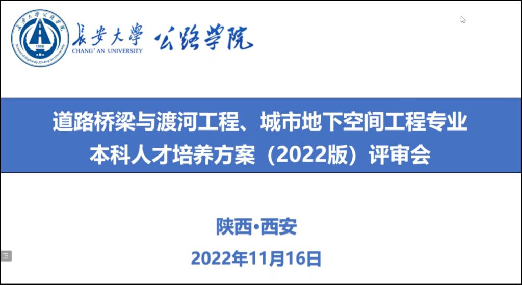 2022年11月16日下午,公司在线上召开道路桥梁与渡河工程、城市地下空间工程专业本科人才培养方案(2022版)专家评审会。专家组由西安理工大学党发宁教授担任组长,北京建筑大学季节教授担任副组长,成员包括西安建筑科技大学宋战平教授、青岛理工大学张素磊教授、北京中航建研航空设计咨询有限公司总经理江慧娟正高级工程师、中交第一公路勘察设计研究院有限公司陈团结正高级工程师、中交第二公路工程局有限公司李强战正高级工程师。2026世界杯官网经理陈建勋、副经理张久鹏、培养方案优化工作小组成员及教务管理人员参加会议,会议由张久鹏主持。