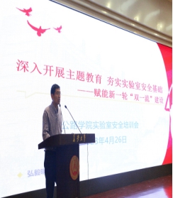 举办实验室安全培训会。4月26日举办实验室安全培训会,邀请西安安备思软件有限公司总经理刘涛开展实验室安全讲座,生动形象地展示了实验室潜在风险的严重后果,分享了处理化学危险品泄漏事件的应急办法,丰富师生安全知识,提高安全意识,学会自我保护技能。