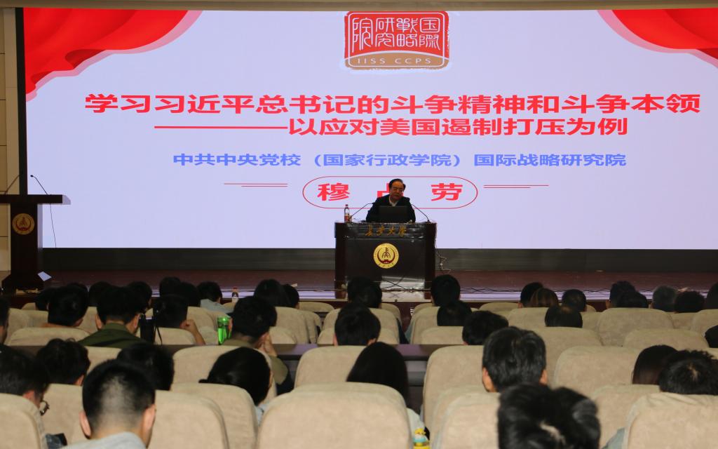 穆占劳从习近平总书记关于斗争精神和斗争本领的重要论述切入,结合当前纷繁复杂的国际国内环境,尤其是中美关系的现状,从理论逻辑、历史逻辑和实践逻辑详细阐述了坚持发扬斗争精神的重大意义,从科学研判斗争态势、坚决锚定斗争目标、准确把握斗争方向、努力掌握斗争规律和切实提高斗争本领五个方面强调了在新时代新征程上党员干部如何发扬斗争精神,提升斗争本领。他讲到敢于斗争、勇于担当是一种精神、责任、格局,未来一个时期,我们面临的风险挑战只会越来越多、越来越严峻。在这个船到中流浪更急,人到半山路更陡的时刻,我们必须坚持发扬斗争精神,磨练斗争意志,提高斗争本领,着力增强防风险、迎挑战、抗打压能力,带头担当作为,做到平常时候看得出来、关键时刻站得出来、危难关头豁得出来。依靠顽强斗争打开事业发展新天地。