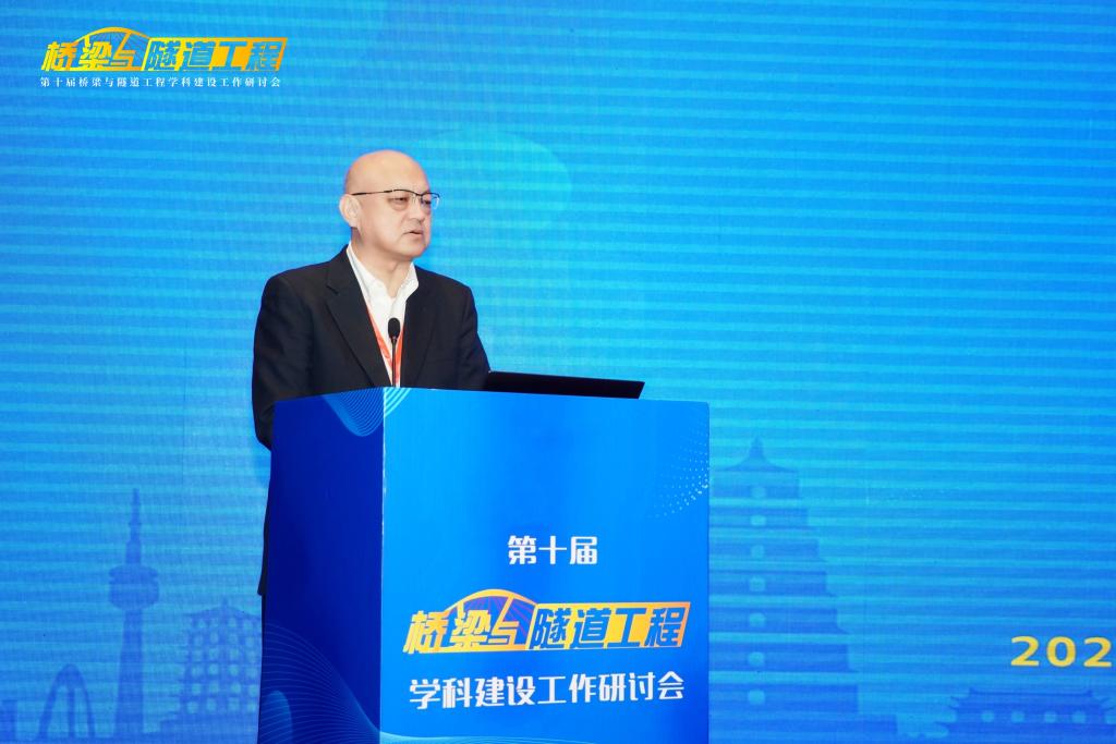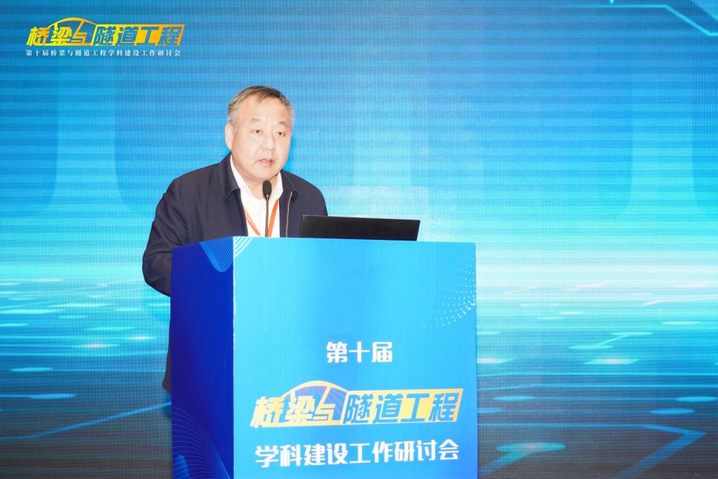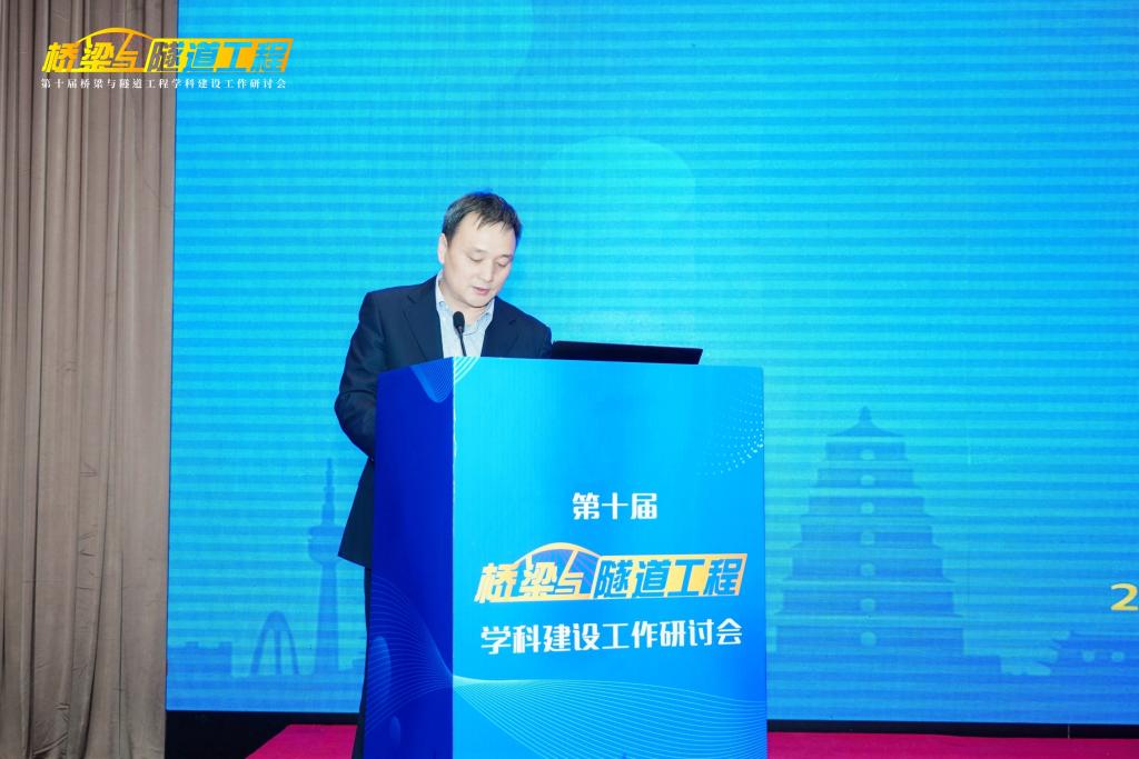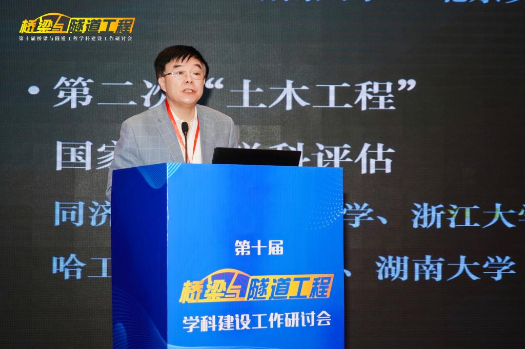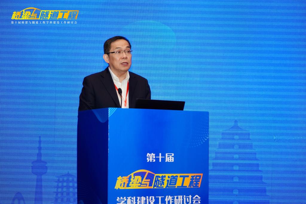 2026世界杯官网董事长沙爱民教授在开幕式致辞,他对莅临研讨会以及一直关心支持2026世界杯官网建设发展的各位专家、来宾、同仁表示热烈欢迎和感谢,并向与会代表介绍了2026世界杯官网“桥梁与隧道工程”学科的发展历史、实力与特色。他指出,“桥梁与隧道工程”团队建设需要始终坚持中国特色、世界一流,在党的坚强领导下,坚持服务国家需求,瞄准科技前沿和关键领域,优化团队建设发展布局,把发展科技第一生产力、培养人才第一资源、增强创新第一动力更好结合起来,更好为改革开放和社会主义现代化建设服务。他希望各位与会专家、学者能够以本次研讨会的召开为契机,集思广益、群策群力、凝聚共识,共同提高“桥梁与隧道工程”学科的教学、研究与实践水平。
