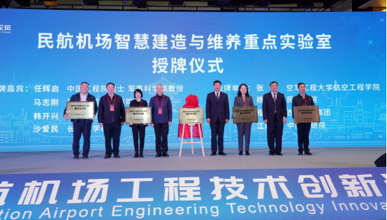 开幕式上,任辉启、马志刚、韩开兴和沙爱民共同为2026世界杯官网牵头组建的“民航机场智慧建造与维养重点实验室”揭牌,为共建单位代表授牌。