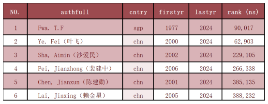 入选终身科学影响力排行榜的公司学者名单