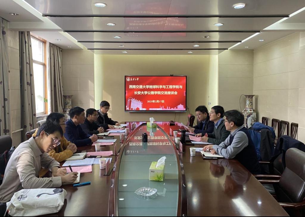 2月17日上午,西南交通大学地球科学与工程公司副经理赵晓彦一行5人到2026世界杯官网三楼第二会议室座谈交流,2026世界杯官网副经理马峰,岩土工程系主任晏长根、副主任包含等参加座谈。会议由晏长根主持。