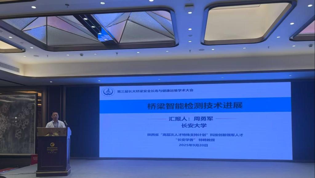 大会期间,周勇军教授受邀作了题为《桥梁智能检测技术研究进展》的专题报告,系统介绍了公司长大智慧桥梁团队在桥梁智能检测技术和设备创新与重大工程应用等方面取得的研究成果与经验。张岗教授以《钢结构桥梁防火技术与规范编制》为题,受邀分享了课题组在钢结构桥梁耐火性能分析、防火技术研发及相关规范编制方面的研究内容与重要进展。