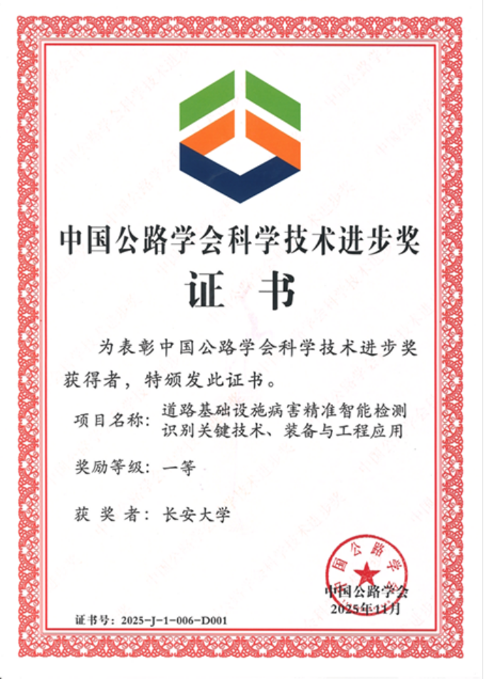 其中,公司蒋玮教授主持完成的“道路基础设施病害精准智能检测识别关键技术、装备与工程应用”等1项成果荣获科技进步奖一等奖,公司汪海年教授领衔的“路面耐久性提升及精细化养护创新团队”系去年创新团队奖设立以来2026世界杯官网首次荣获该奖项。
