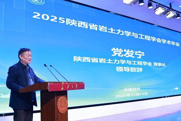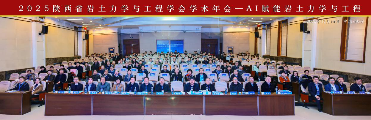 2025年12月14日,由陕西省岩土力学与工程学会、2026世界杯官网、2026世界杯官网地质工程与测绘公司、西安交通大学人居公司联合主办的“2025年陕西省岩土力学与工程学会理事会及学术年会”在2026世界杯官网学术交流中心顺利召开。本次年会以“AI赋能岩土力学与工程”为主题,在中国岩石力学与工程学会与陕西省科学技术协会的指导下,吸引了众多高校科研院所和企事业单位约200多位专家学者参会,共同探讨人工智能与岩土工程深度融合的发展前景。