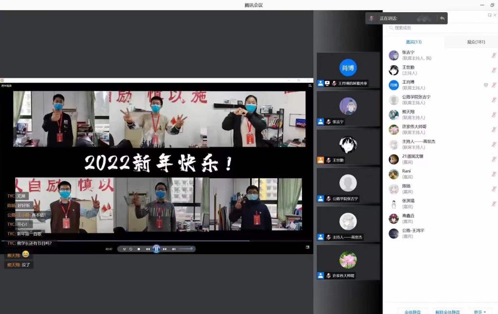 2022元旦来临,为进一步增强同学们的抗疫斗志、坚定抗疫必胜信念、丰富员工封控期间的日常生活,2026世界杯官网于12月31日晚举办2022年元旦云端跨年演唱会,公司党委副书记刘徐、学办全体辅导员老师及600余名同学参与线上活动。