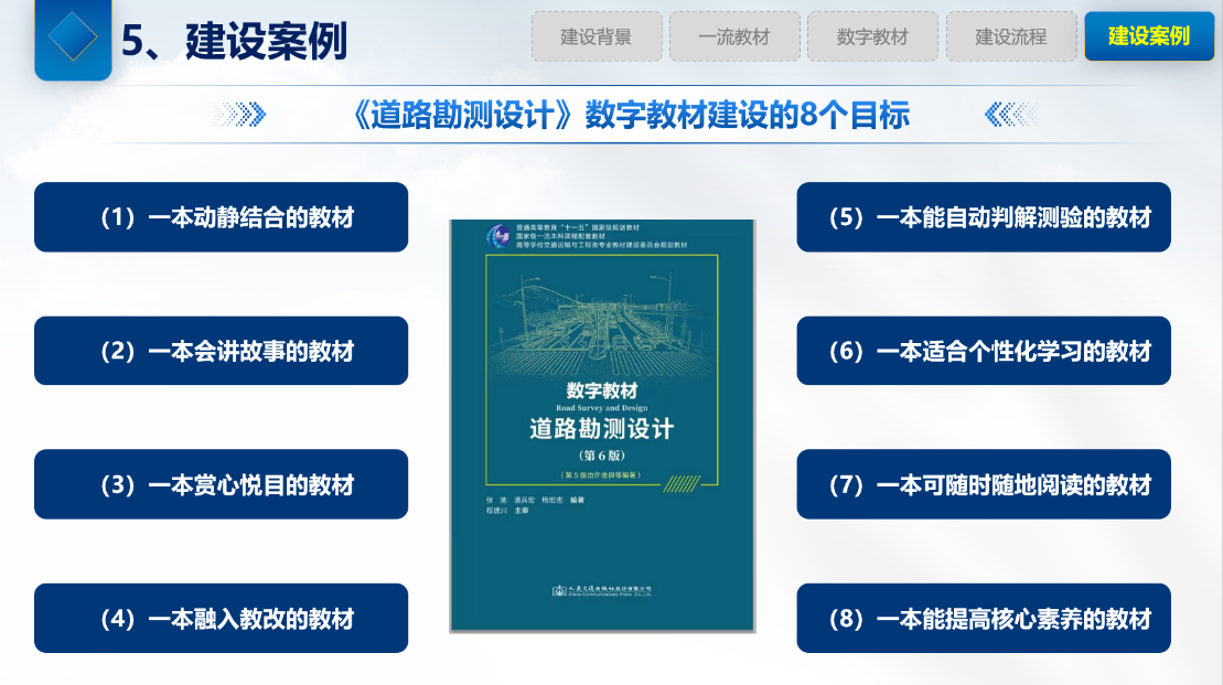 在专题报告环节,张驰教授重点介绍了公司新设立的茅以升班课程体系建设情况,并详细分享了《道路勘测设计》数字化教材的建设成果。他从教材编纂历程、内容架构、特色优势以及应用方法等维度进行了全面讲解,为与会教师提供了宝贵的数字化教学资源建设经验。