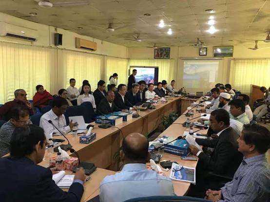 Attending the meeting were the Chief Engineer, Esne Alam Hasan, and Deputy Chief Engineer of,Road and Highway Bureau (RHD), Ministry of Transport, Bangladesh, and the General Manager of the Dhaka Roundabout Expressway Project of the Ministry of Transport and Highway Bureau, Sertajur Rahman. The Chinese side attended the meeting was deputy chief engineer of Sichuan Road and Bridge Construction Group Corporation - Dong Wubin, a senior engineer of the Chinese chairman of "Dhaka Dhaka Ring Expressway Construction Company" - Xiao Zhiming, Chief Engineer of Sichuan Luqiao Design Branch Zhou Mingkai, Director of the General Engineering Office - Li Peng, and the research team from the School of Highway (Prof. ZHENG Nanxiang, Prof. YAN Xili, Prof. CHEN Yu and Dr. BI Jiefu)