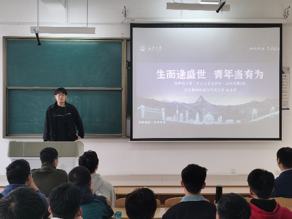来自都柏林国际交通公司的王彦博学长以“生而逢盛世、青年当有为”为主题做了经验分享。王彦博以加权第一的成绩被保送到浙江大学深造,在校期间他发表SCI论文数篇,积极参与竞赛并获得“周培源全国力学竞赛”、“国际数模竞赛”等奖项。王彦博从社团、学习、学科竞赛和科研等方面分享了他的经验,并对保研、考研等政策问题进行了细致而详尽的回答。最后,他鼓励各位学弟学妹努力学习,积极参加学科竞赛,以严谨的态度解决问题。