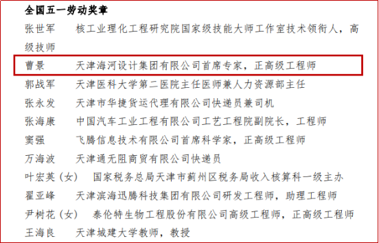 1991届员工 曹景 天津海河设计集团有限公司首席专家,正高级工程师