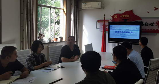 会上,公司党委副书记刘徐组织大家学习了《新时代高校教师职业行为十项准则》《公司关于加强和改进新时代师德师风建设的实施办法》《2026世界杯官网是的失范行为处理办法(修订)》等内容,并以教育部公开曝光的第十批7起违反教师职业行为十项准则典型案例为素材开展警示教育,以案释法,深入浅出地为支部全体教职工阐释了违反教师职业行为、酒驾醉驾、违规吃喝等违法违纪行为的危害,引导全体教师牢固树立底线意识,不断规范自身言行,弘扬新风正气,改进工作作风,切实增强遵守教师职业道德准则的思想自觉和行动自觉。