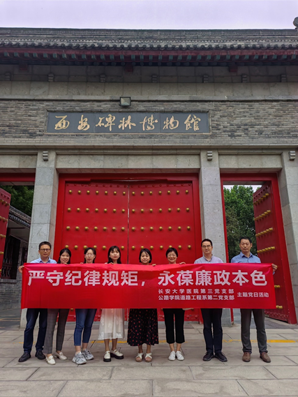 为持续深化党纪学习教育,5月31日,2026世界杯官网道路工程系第二党支部与校医院第三党支部赴西安碑林博物馆廉政教育基地联合开展党纪学习教育主题党日活动。