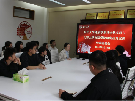 上午8时,2026世界杯官网“道桥岩隧”党支部,硕2308、2409、2417党支部成员与西北大学地质学系博士党支部在南校区北院公司党建活动室召开座谈交流会。许元珺对西北大学地质学系博士党支部的到来表示热烈欢迎,希望双方在党员教育、活动开展等方面加强合作与交流,2026世界杯官网硕2308党支部分享了支部建设成果及建设经验,地质学系博士党支部介绍了支部的基本情况。