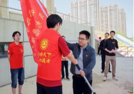 公司党委书记张久鹏为党员志愿者佩戴党徽