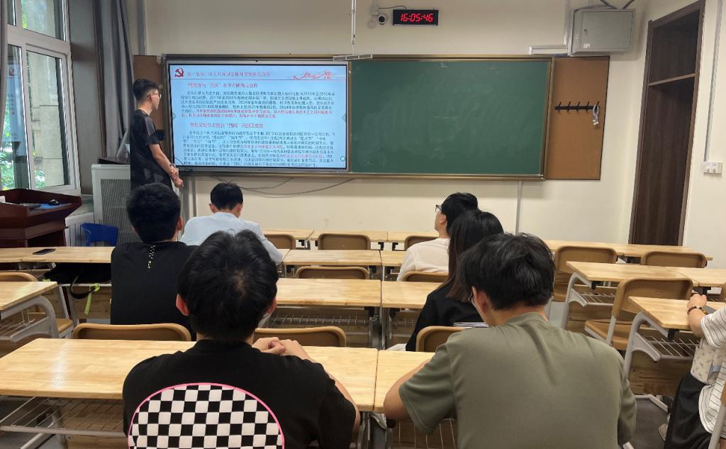 本科生第二党支部书记李璟瑜重点解读了中央八项规定的主要内容及其重要意义,并结合当前作风建设中存在的突出问题,指出党员要坚持廉洁自律、改进工作作风,力戒形式主义、官僚主义。他还通过具体案例剖析,教育引导支部全体党员进一步增强纪律意识和规矩意识。