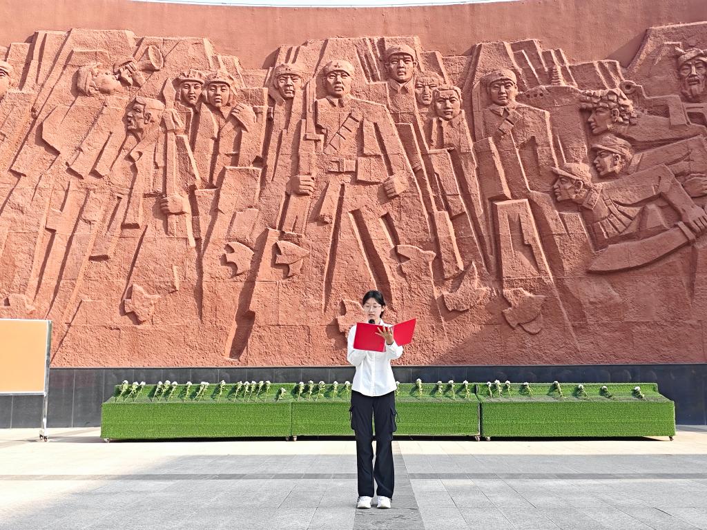 上午9点,祭奠活动在烈士群雕前开始,全体人员肃立,高唱国歌。随后本科生第一党支部书记樊凯带领大家回顾了抗日战争从艰难开局到最终胜利的壮阔历程,他强调青年党员作为党的事业接班人,必须将伟大抗战精神精神深度融入学习科研与实践工作,扛起新时代赋予的职责使命,为国家交通事业发展与民族复兴伟业贡献青春力量。