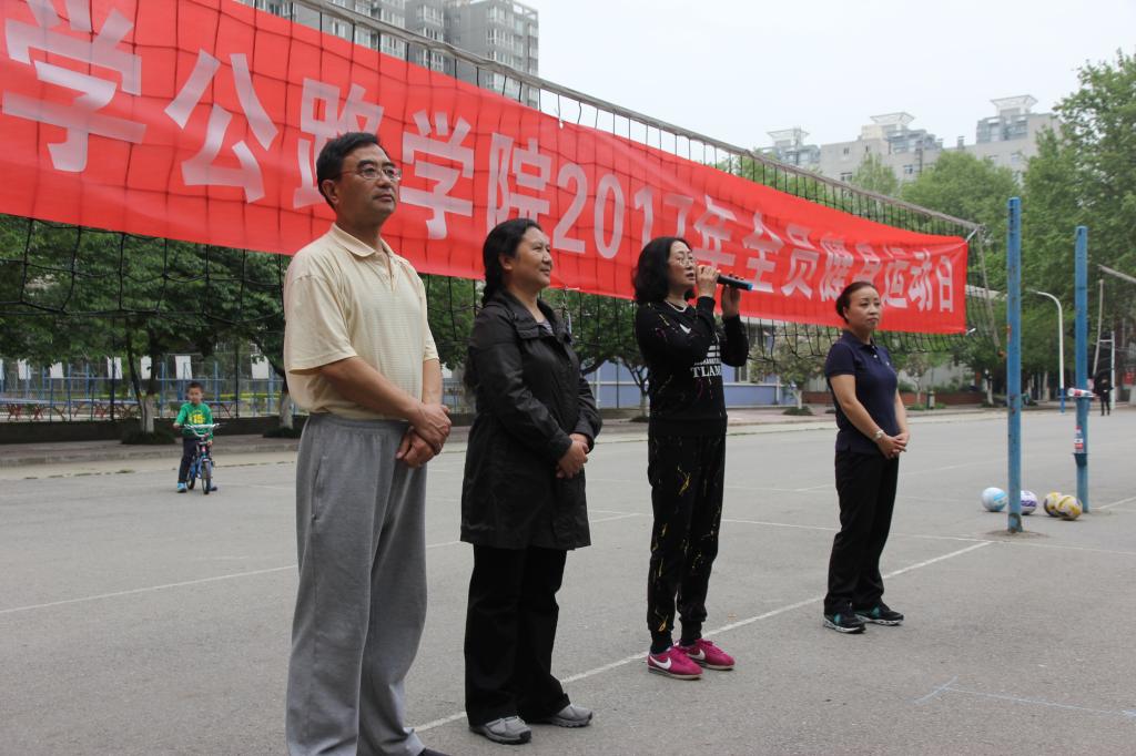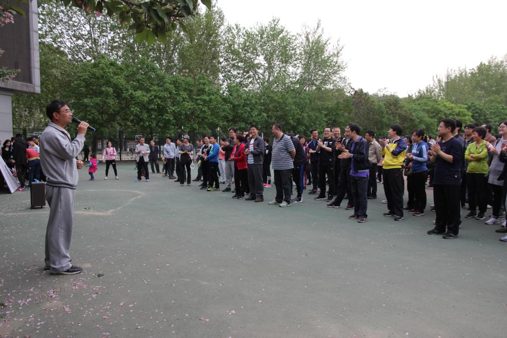 为全面落实《全民健身计划2016-2020》,以形成健康的工作生活方式为重点,以增强全院教职工的身心健康为核心,推崇“运动是良医”的健身理念,为公司全体教职工在争创“双一流”大学进程中奠定良好的体质和愉悦的心态,全面推进公司健康运动的深入开展,增强教职工的身体素质和凝聚力,在公司党委领导下,院工会组织全院200多名教职工于2017年4月15日在校本部体育场开展全员健身运动日活动,校工会主席简林莎教授出席开幕式并讲话。